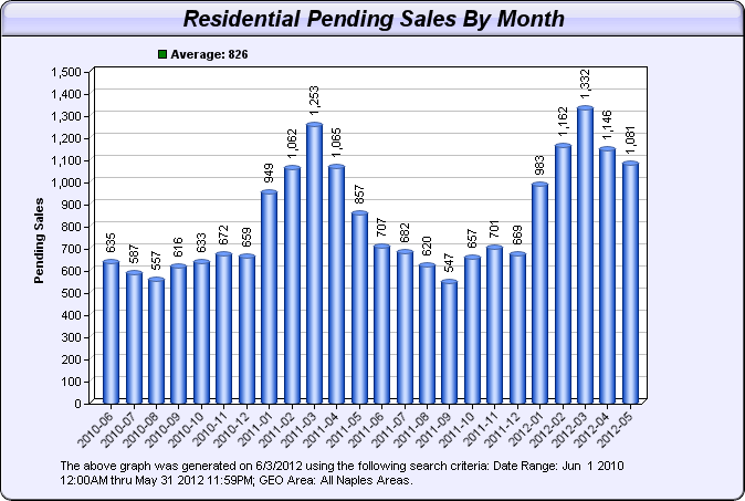 Zur Zeit werden 2417 Objekte (gegenüber 2642 Anfang Mai) in Naples als unter Vertrag stehend geführt. 1076 davon sind Shortsales, die oft mehrere Monate benötigen, bis die Bank zu einer Entscheidung kommt.